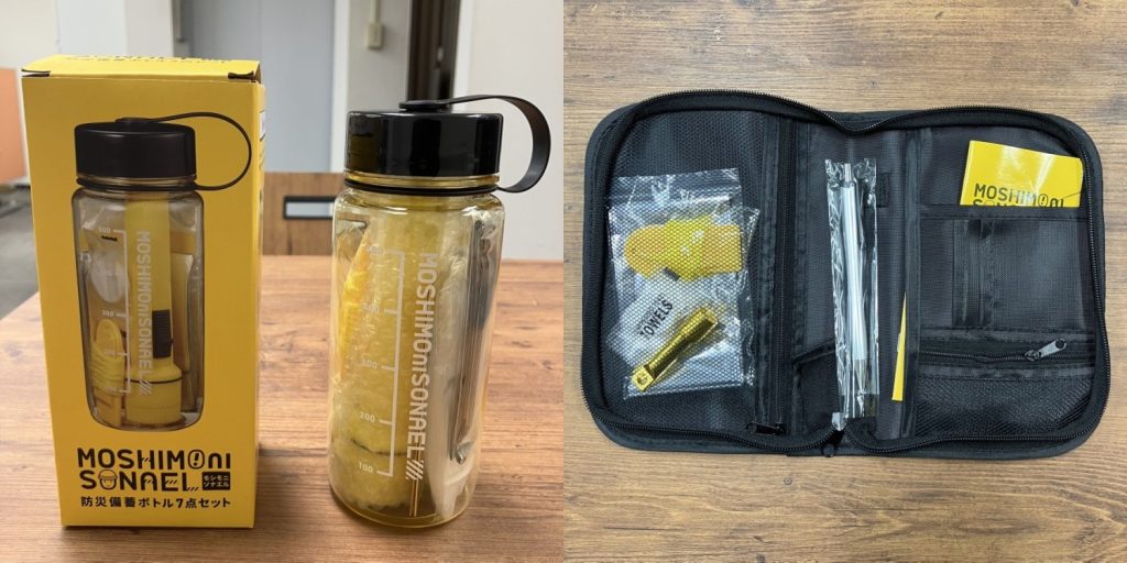 防災用品の 左:7点セット / 右:9点セット