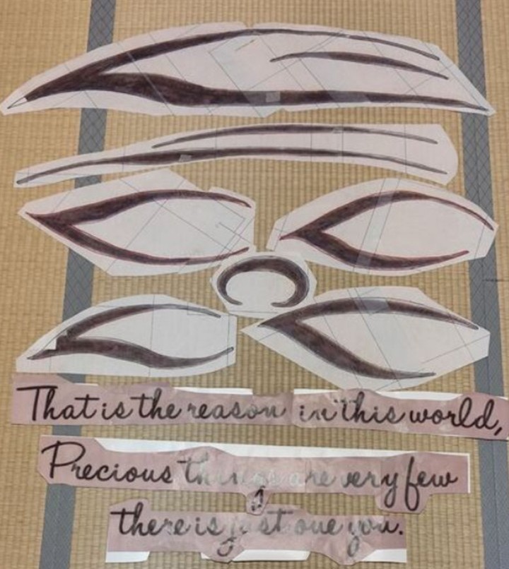 まずは、グラフィックシートの型紙を作成し塩ビシート(ホワイト)の切り抜きを行います