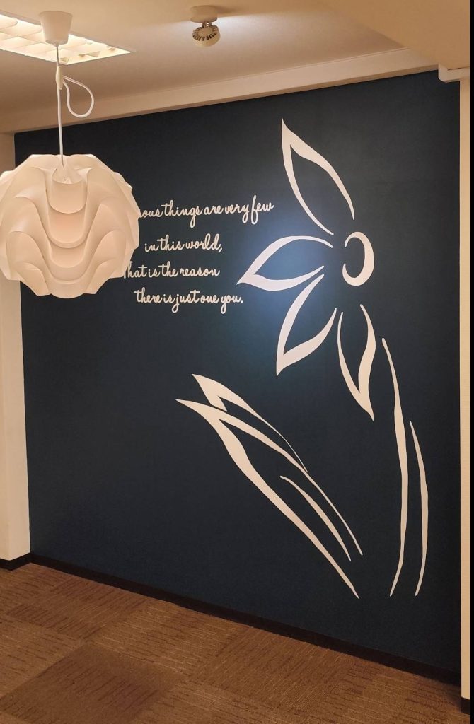 空間にアクセントと”遊び心”を目的に行った今回のウォールアート作成、イメージ通りの作品が完成しました