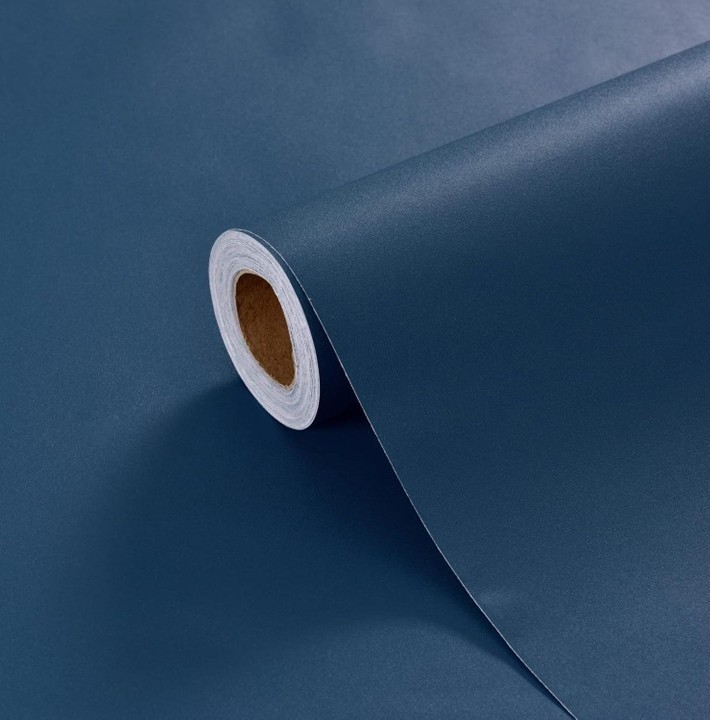 【After】クロスを捲り下地補修のうえ、ネイビーの塩ビシートとホワイトのグラフィックシートを施工